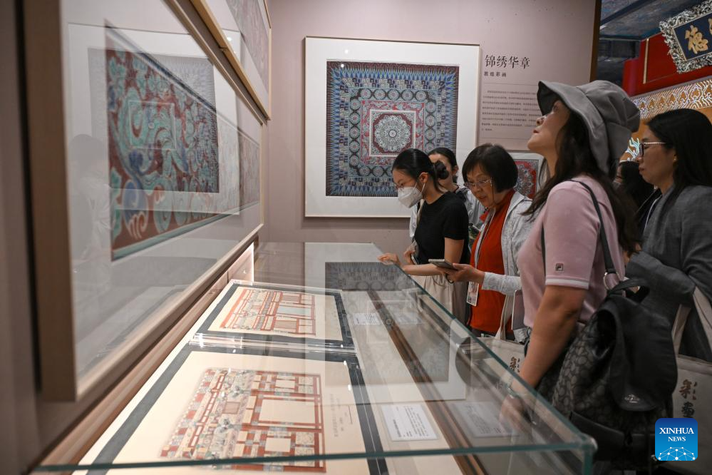 Guests visit the exhibition titled "A Thousand-Year Legacy of Caihua: Inheritance and Innovation in Official-Style Chinese Architectural Polychrome Painting" held at the Palace Museum in Beijing, capital of China, May 26, 2025.