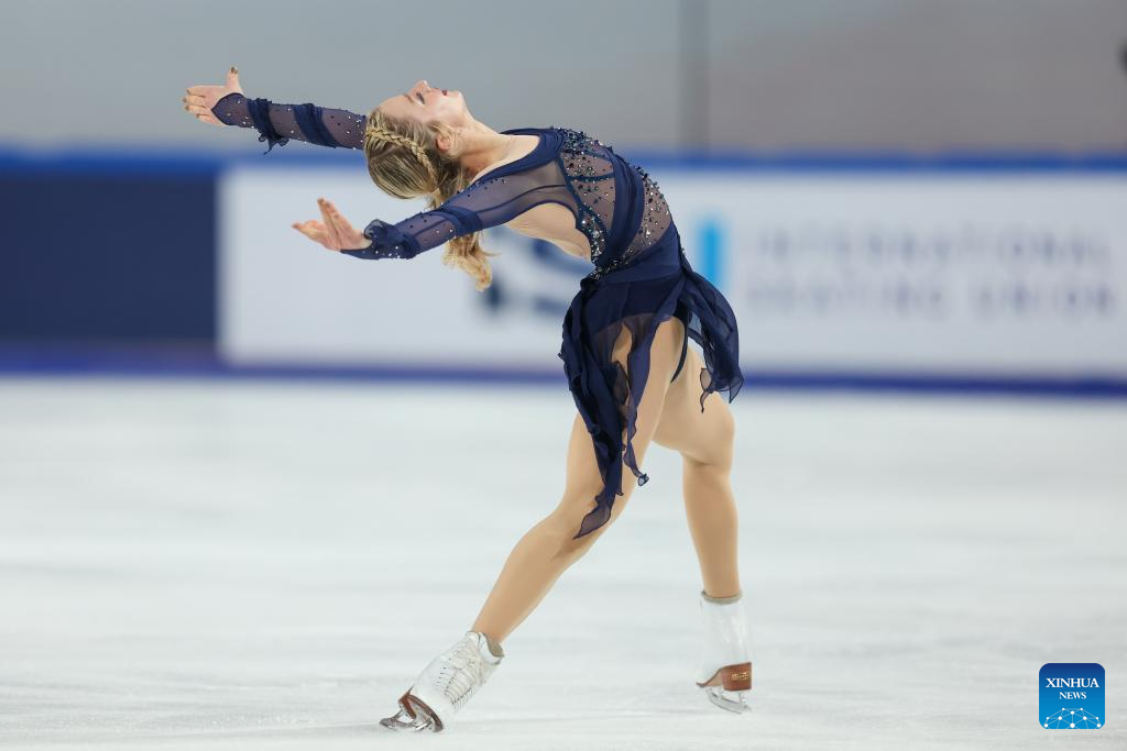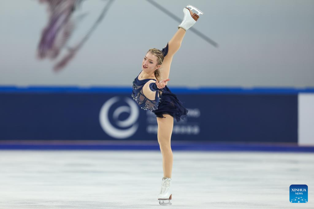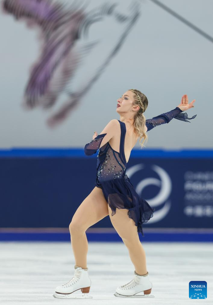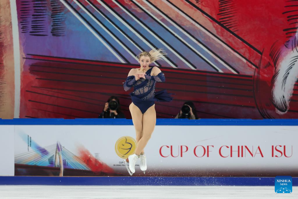 Anastasiia Gubanova of Georgia performs during the women's free skating at the Cup of China ISU Grand Prix of Figure Skating 2025 in southwest China's Chongqing Municipality, on Oct. 25, 2025. (Xinhua/Huang Wei)