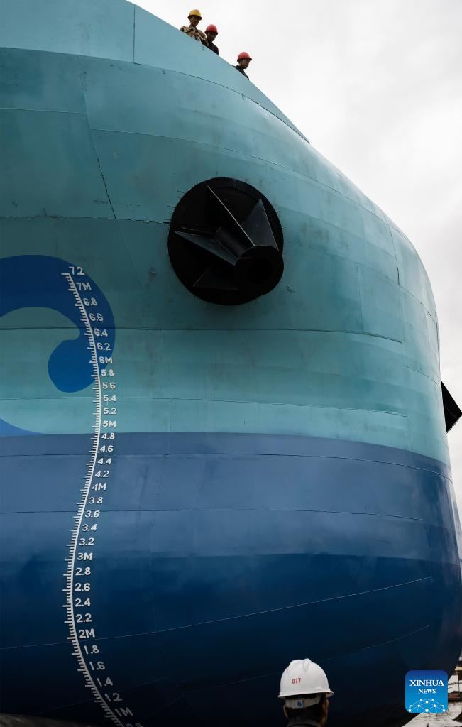 WUHAN, Oct. 23 (Xinhua) -- China's biggest all-electric bulk carrier, named Gezhouba, was launched on Thursday in Yichang, central China's Hubei Province, marking a key milestone in the country's green and intelligent shipping sector.
