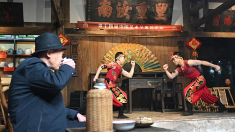 Acrobatic performance staged at Jinqin Tea House in Chengdu, China's Sichuan