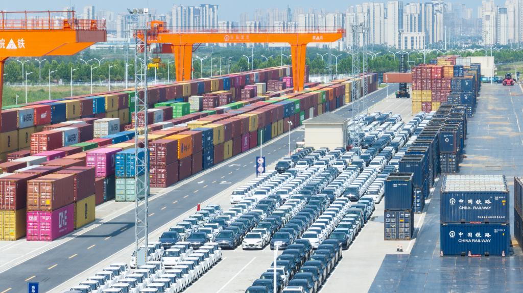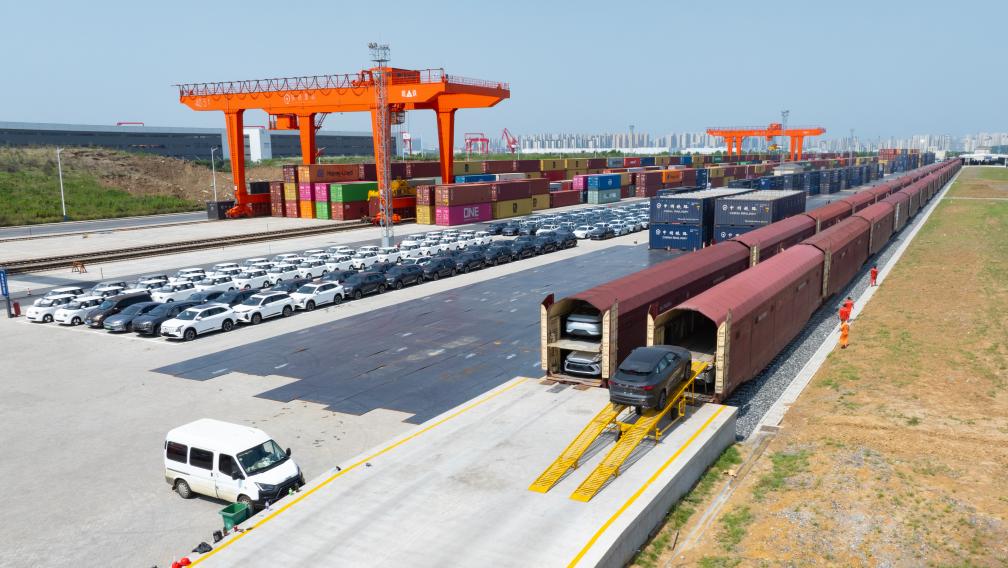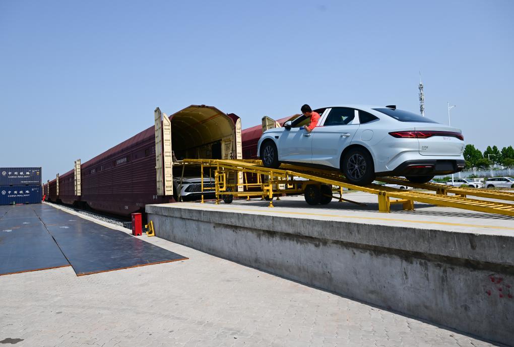 This photo shows a China-Europe freight train departing from a logistics center of Hefei north railway station in Hefei, east China's Anhui Province, June 13, 2025.(Xinhua/Zhou Mu)A drone photo shows a car for export being loaded into a carriage of a special-purpose train at the Paihe Port railway logistics base in Hefei, east China's Anhui Province, June 17, 2025. (Xinhua/Zhou Mu)A drone photo shows a ro-ro cargo ship berthed at Wuhu Port in Wuhu City, east China's Anhui Province, May 14, 2025. (Photo by Xiao Benxiang/Xinhua)A drone photo shows cars to be loaded for export at the Paihe Port railway logistics base in Hefei, east China's Anhui Province, June 17, 2025. (Xinhua/Zhou Mu)An aerial drone photo shows cars to be loaded for export at Zhujiaqiao area of Wuhu Port in Wuhu City, east China's Anhui Province, May 14, 2025. (Photo by Xiao Benxiang/Xinhua)A drone photo shows a China-Europe freight train departing from a logistics center of Hefei north railway station in Hefei, east China's Anhui Province, June 13, 2025. (Xinhua/Zhou Mu)A staff member drives a car for export into a carriage of a special-purpose train at the Paihe Port railway logistics base in Hefei, east China's Anhui Province, June 17, 2025. (Xinhua/Zhou Mu)