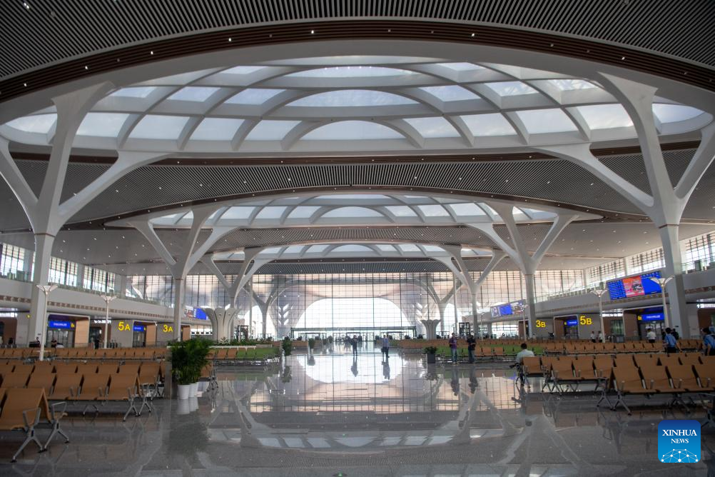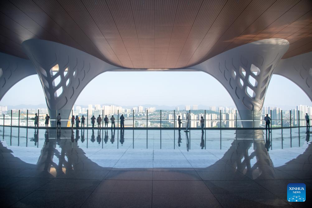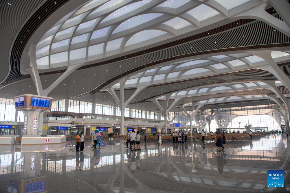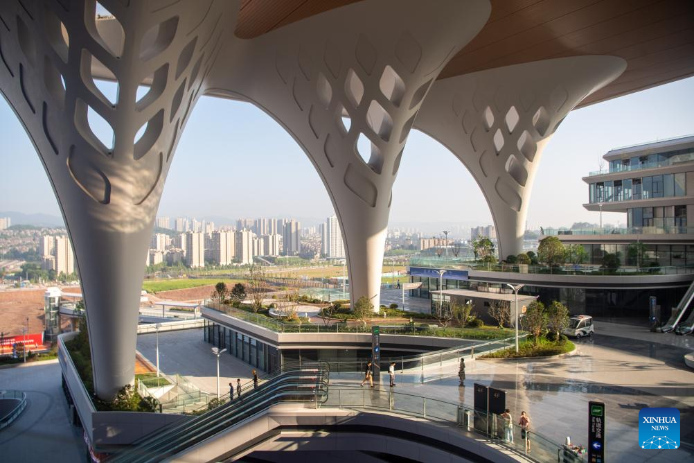 This photo shows a view of the Chongqing East Railway Station in southwest China's Chongqing, June 27, 2025.