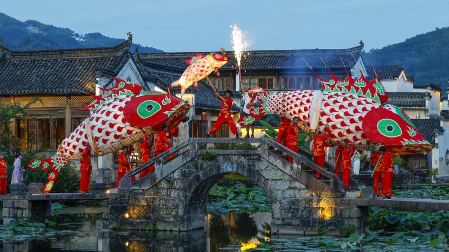 Tourists pose for photos in Chengkan Village, Huizhou District of Huangshan City, east China's Anhui Province, July 25, 2025. (Xinhua/Zhang Duan)Tourists watch a fish lantern parade in Chengkan Village, Huizhou District of Huangshan City, east China's Anhui Province, July 25, 2025. (Xinhua/Zhang Duan)A drone photo taken on July 25, 2025 shows tourists watching a fish lantern parade in Chengkan Village, Huizhou District of Huangshan City, east China's Anhui Province. (Photo by Fan Chengzhu/Xinhua)A fish lantern team parades in Chengkan Village, Huizhou District of Huangshan City, east China's Anhui Province, June 30, 2025. (Photo by Shi Yalei/Xinhua)Tourists visit Chengkan Village, Huizhou District of Huangshan City, east China's Anhui Province, July 25, 2025. (Xinhua/Zhang Duan)This photo taken on July 25, 2025 shows a view at dusk in Chengkan Village, Huizhou District of Huangshan City, east China's Anhui Province. (Photo by Fan Chengzhu/Xinhua)