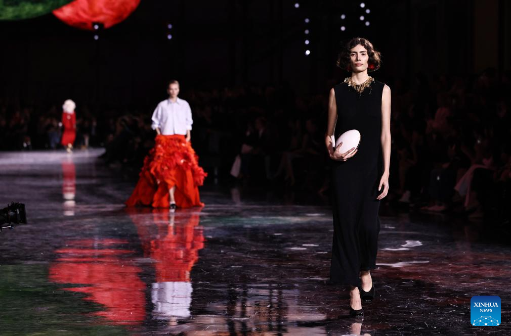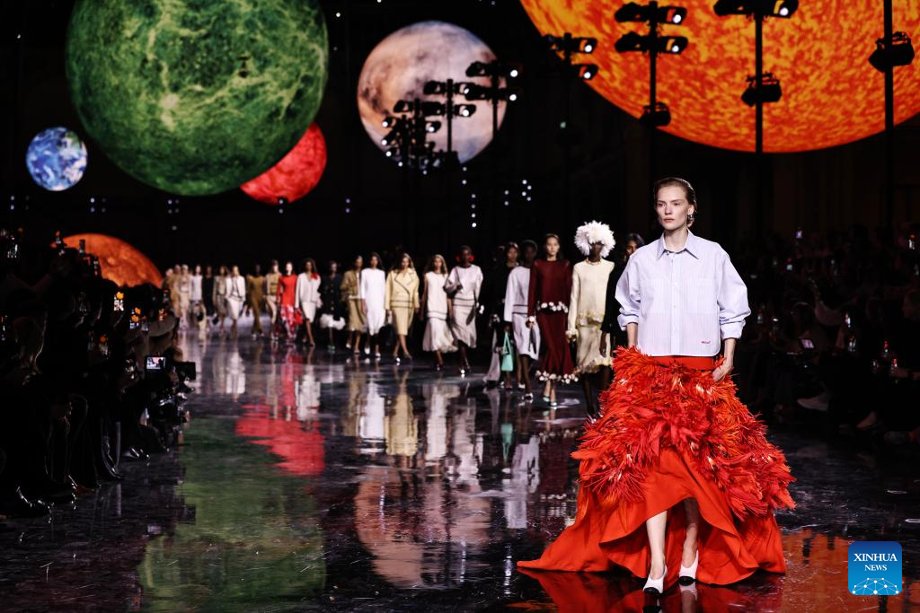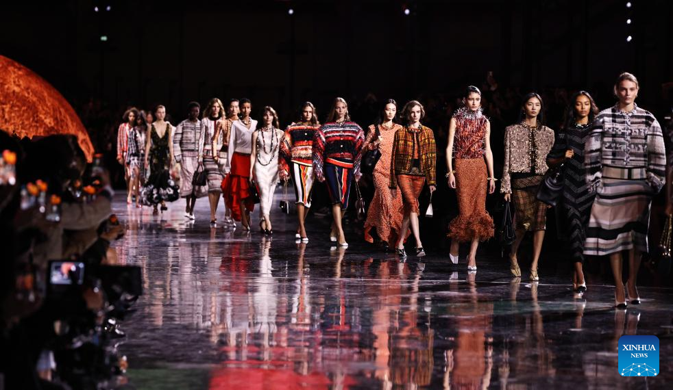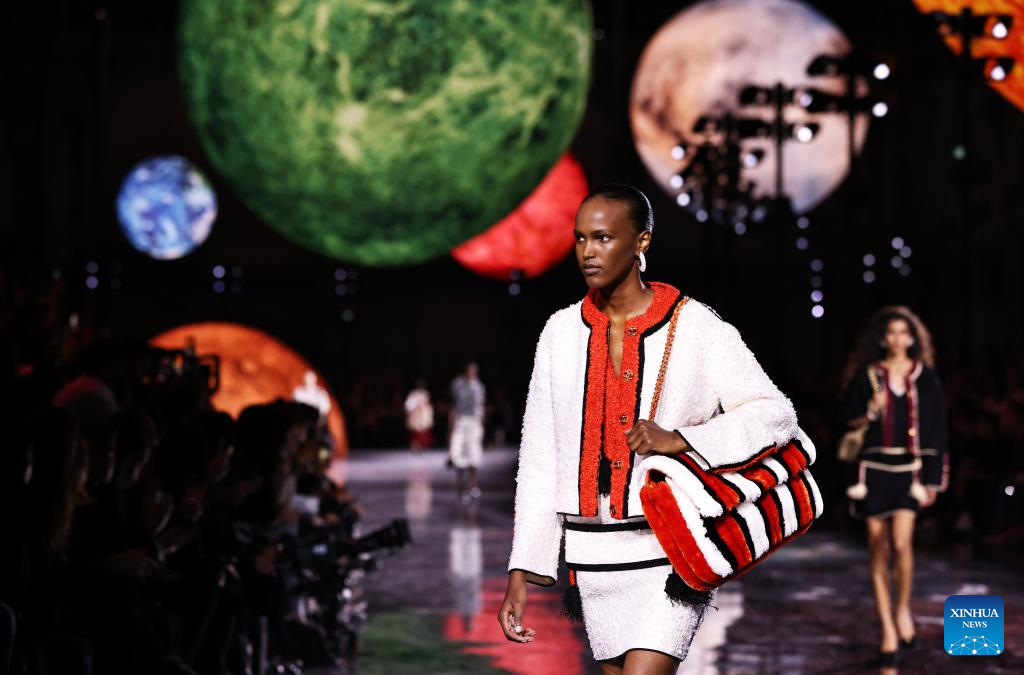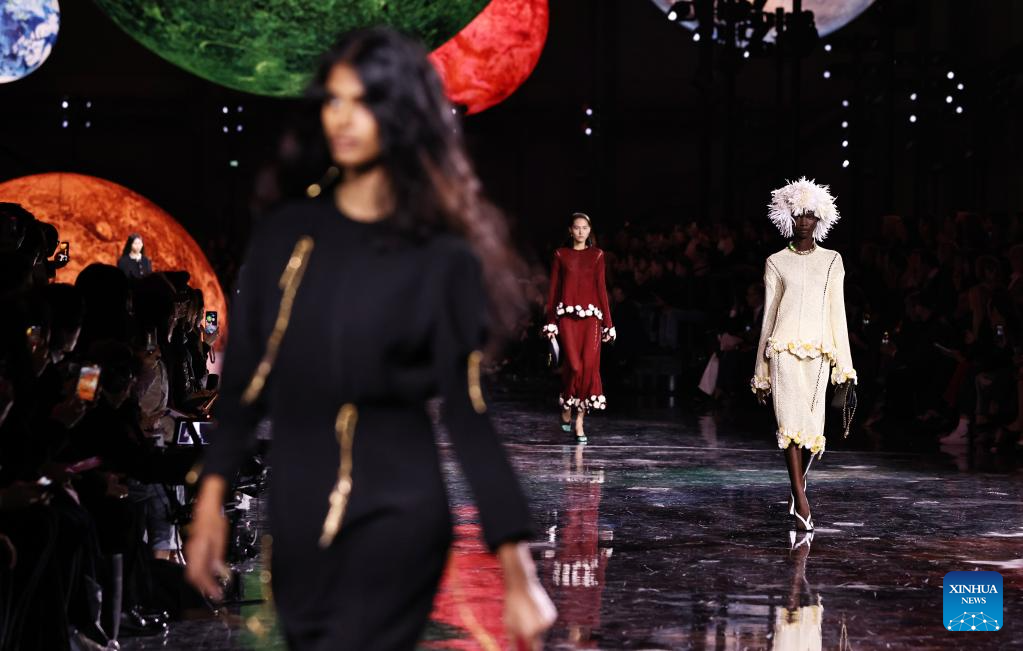 Models present creations by designer Matthieu Blazy as part of his Spring/Summer 2026 Women's ready-to-wear collection show for the French fashion house Chanel during the Paris Fashion Week, in Paris, France, on Oct. 6, 2025. (Xinhua/Gao Jing)