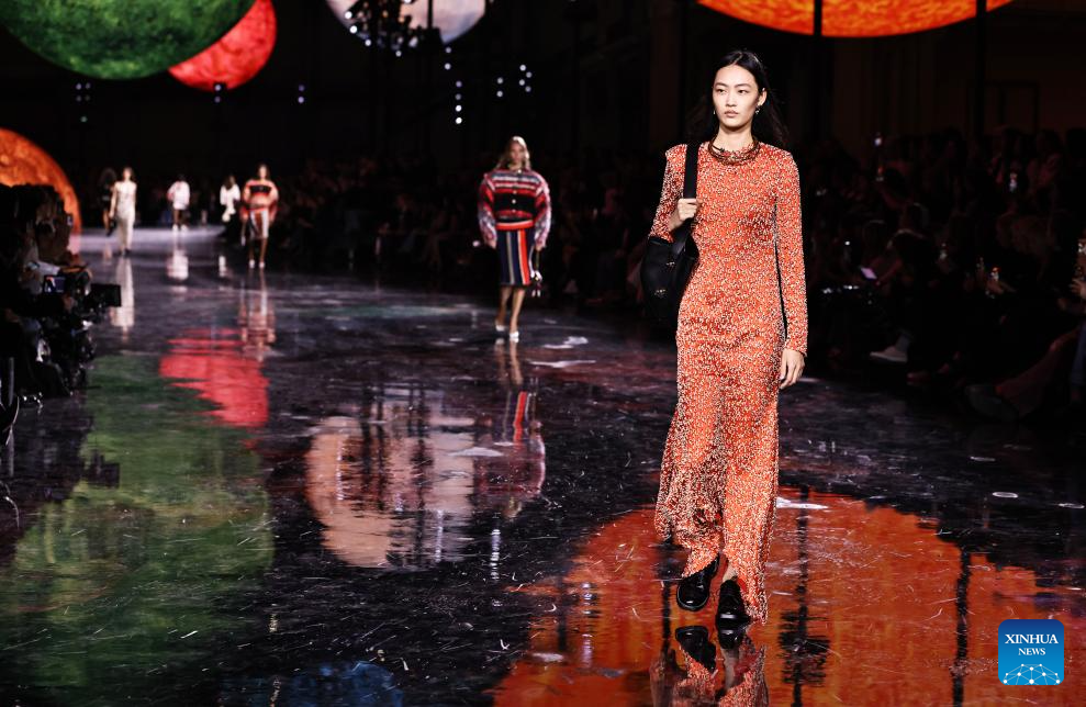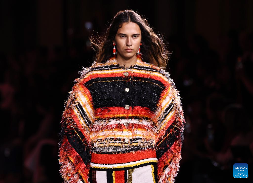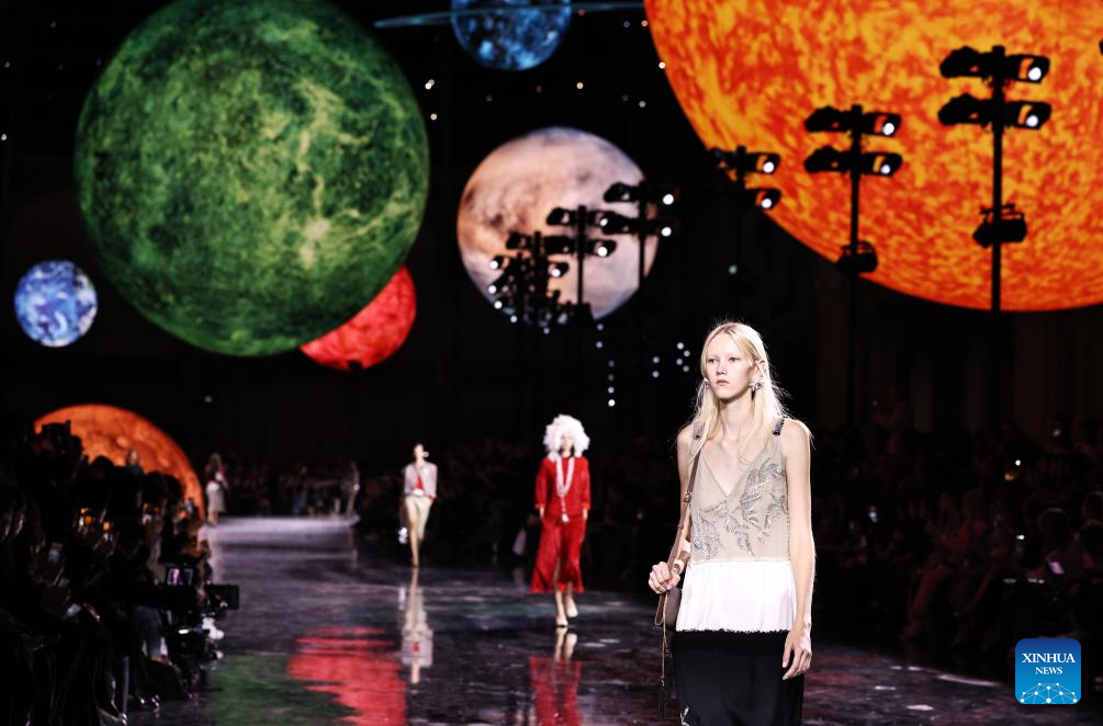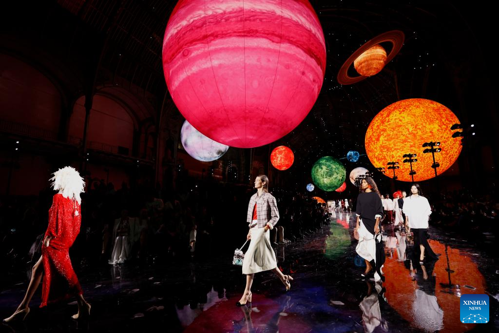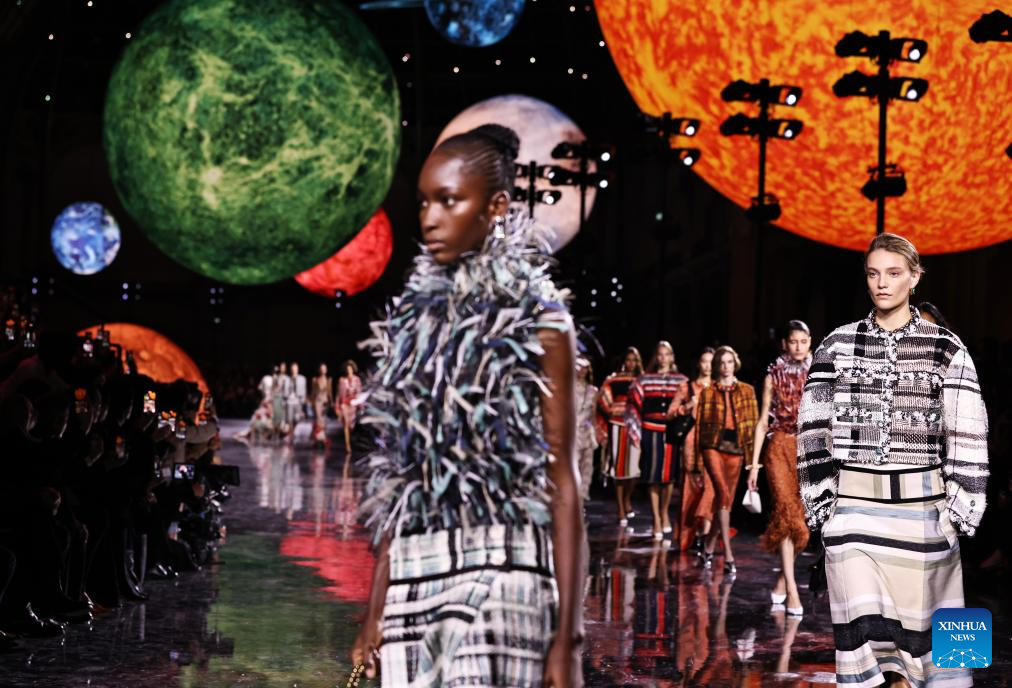 Models present creations by designer Matthieu Blazy as part of his Spring/Summer 2026 Women's ready-to-wear collection show for the French fashion house Chanel during the Paris Fashion Week, in Paris, France, on Oct. 6, 2025. (Xinhua/Gao Jing)