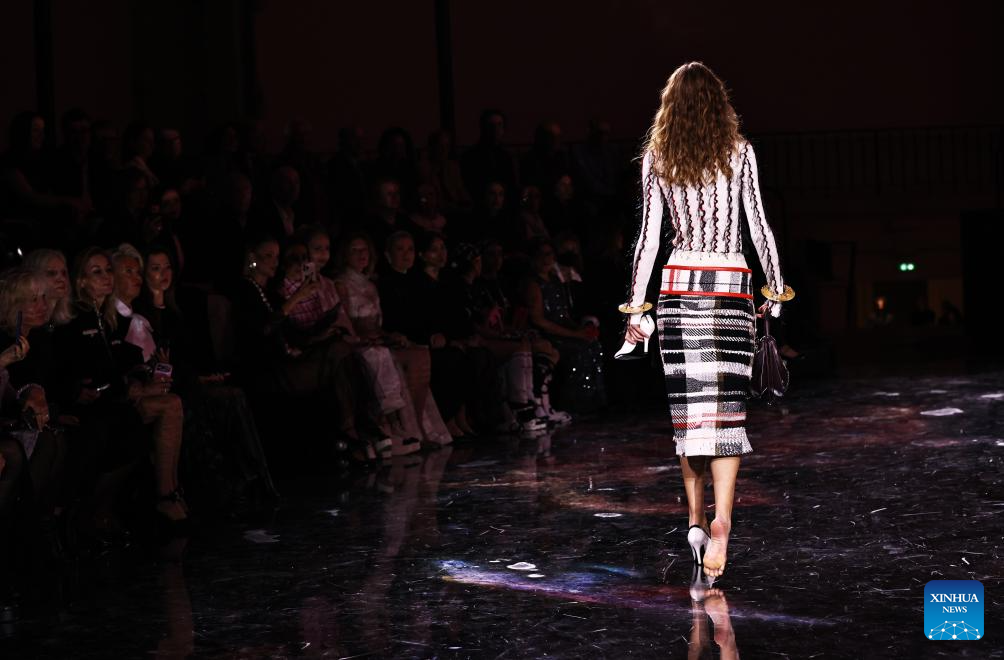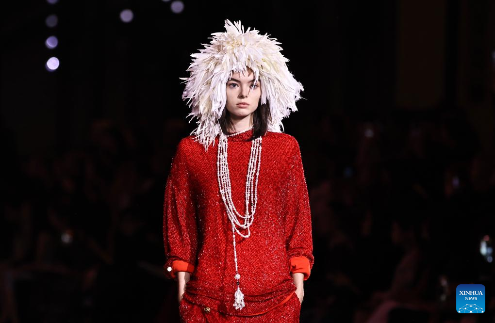 A model presents creations by designer Matthieu Blazy as part of his Spring/Summer 2026 Women's ready-to-wear collection show for the French fashion house Chanel during the Paris Fashion Week, in Paris, France, on Oct. 6, 2025. (Xinhua/Gao Jing)