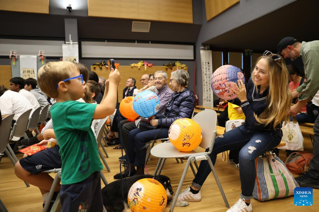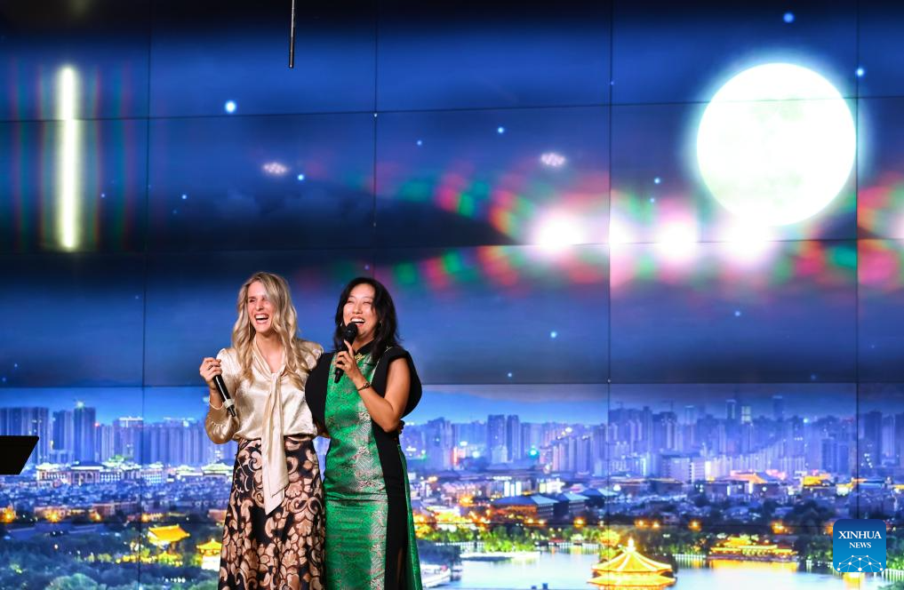 Local Chinese culture enthusiasts perform during a Mid-Autumn-themed funfair at Marymount International School in Rome, Italy, on Oct. 10, 2025. The funfair was held here on Friday, where students and local residents enjoyed a variety of Chinese cultural activities and performances presented by local enthusiasts of Chinese culture. (Xinhua/Li Jing)