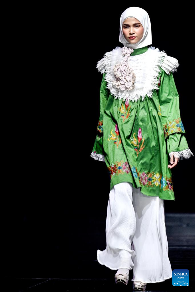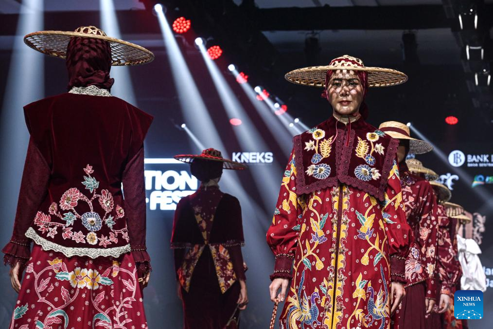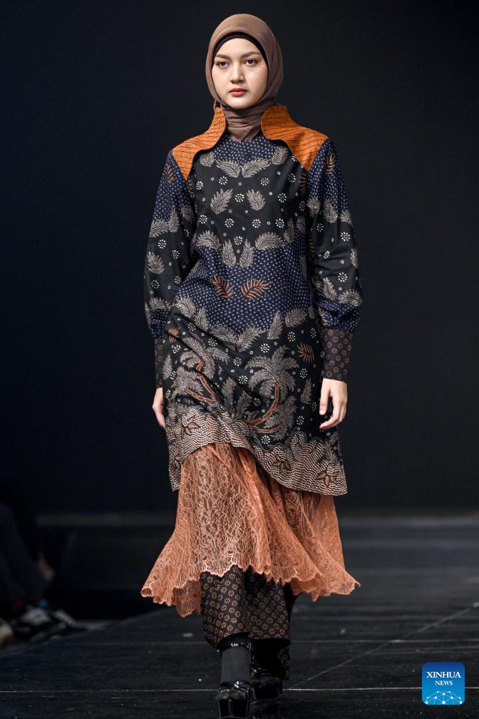 JAKARTA, Oct. 11 (Xinhua) -- Models walked confidently down the runway in long, layered outfits that combined elegance with modesty. In the audience, guests from Indonesia and abroad raised their cameras, capturing every detail of the sophisticated ensembles that define the country's growing modest fashion industry.