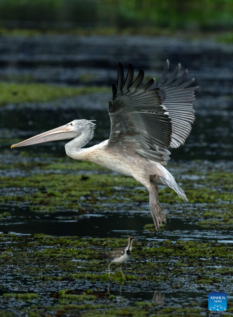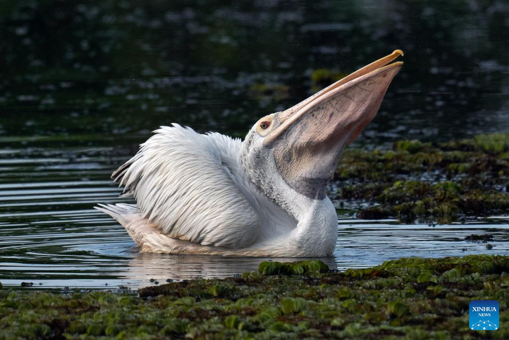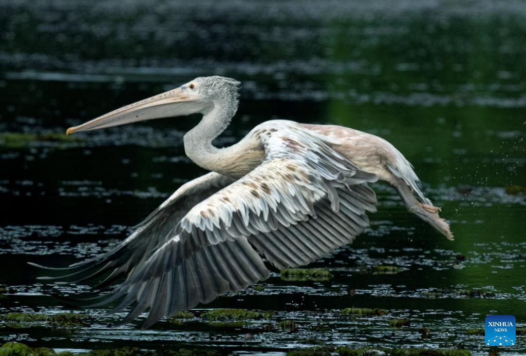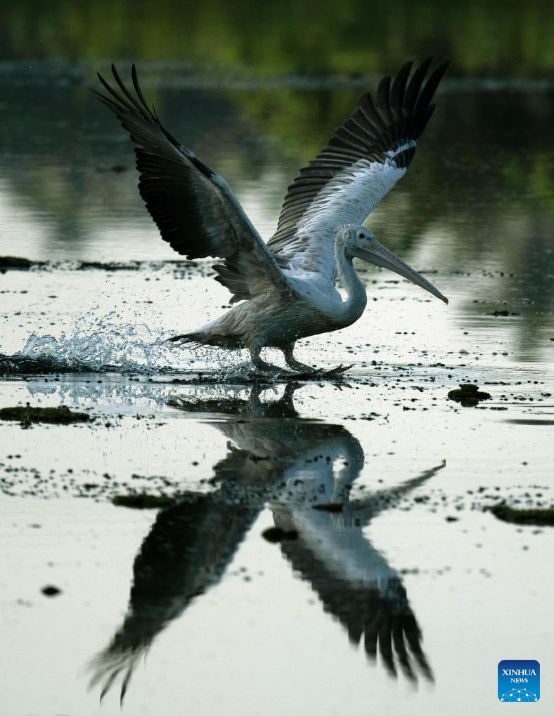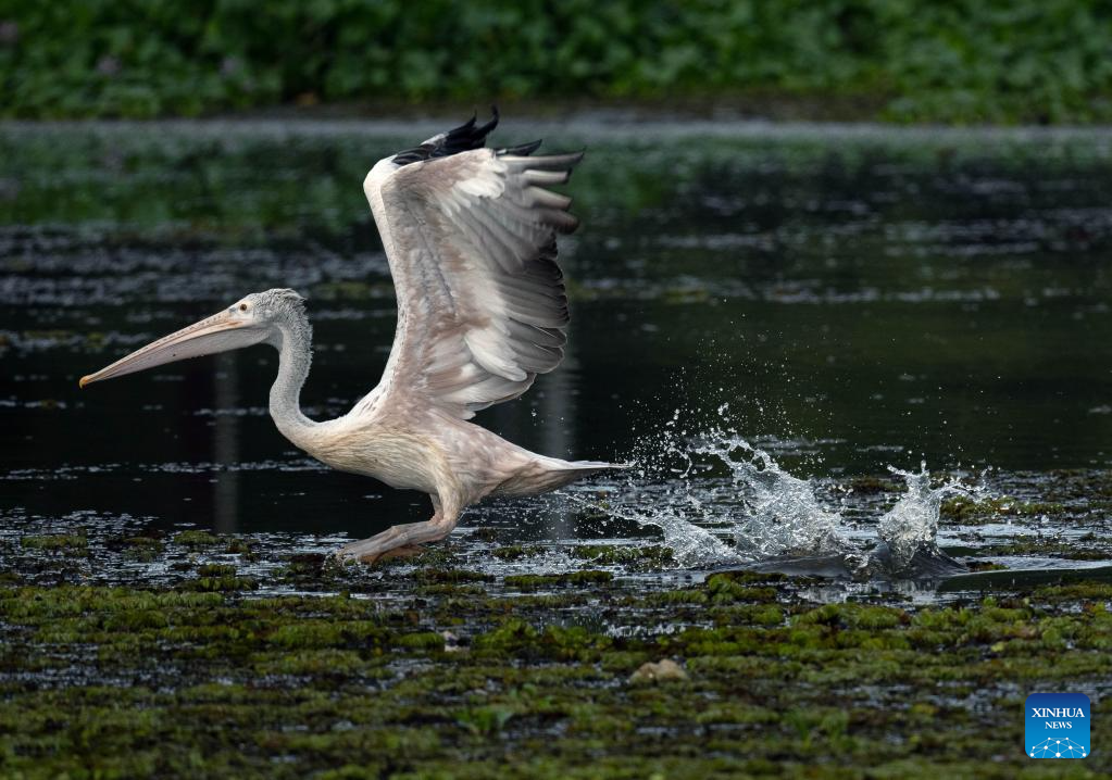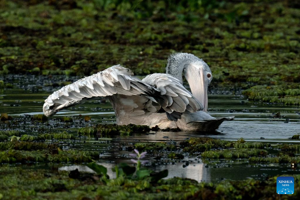 A pelican is seen in a wetland park in Kotte, Sri Lanka, on Oct. 12, 2025. (Photo by Ajith Perera/Xinhua)