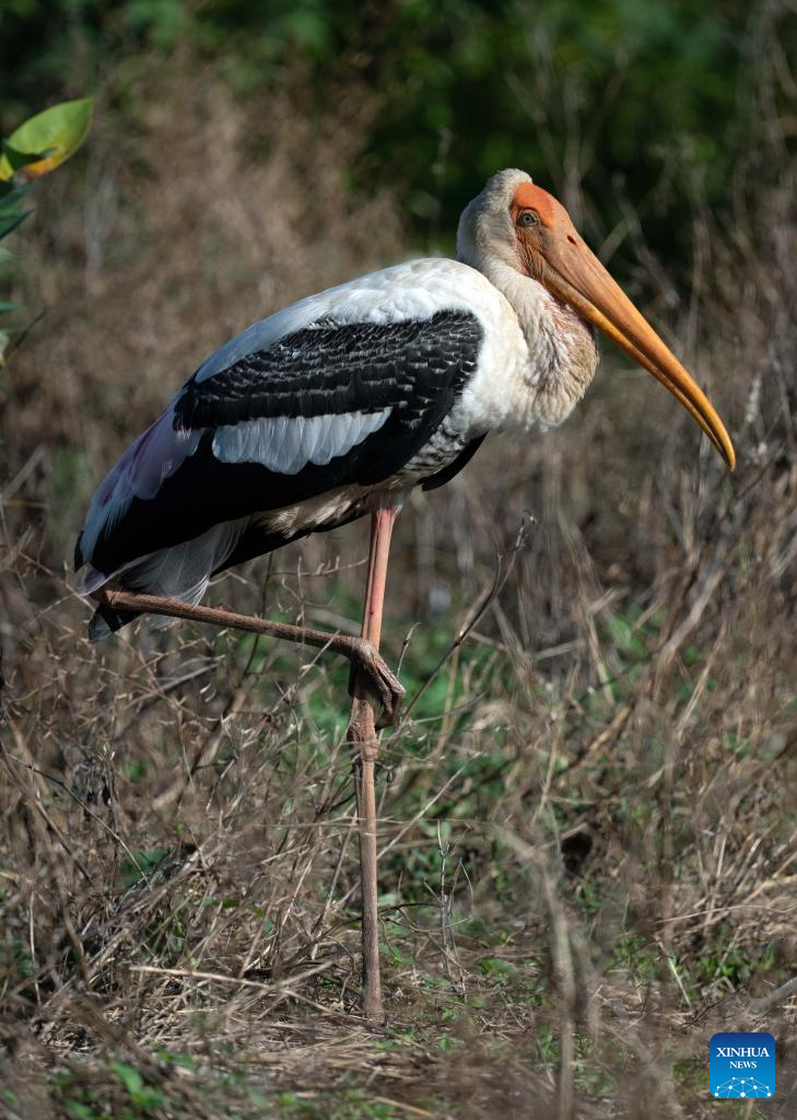A painted stork is seen in a wetland park in Kotte, Sri Lanka, on Oct. 13, 2025. (Photo by Ajith Perera/Xinhua)