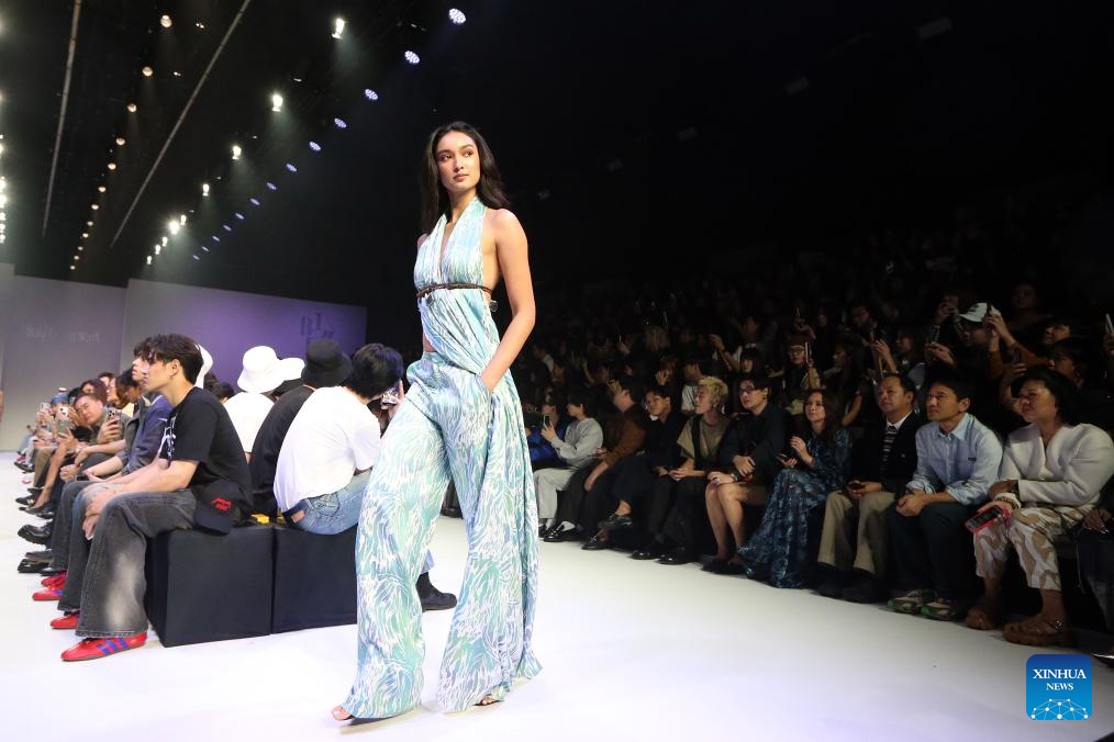 A model presents creations during the Bangkok International Fashion Week in Bangkok, Thailand, on Oct. 16, 2025. Running from Oct. 16 to 19, the Bangkok International Fashion Week is an important platform for Thai designers to showcase their designs and creativity. (Xinhua/Rachen Sageamsak)