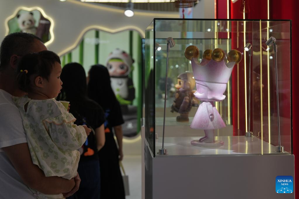 People visit the booth of POP MART at Liangzhu Cultural and Creative Bazaar in Hangzhou, east China's Zhejiang Province, Oct. 17, 2025. The bazaar opened here on Friday. It features activities such as exhibitions, panel discussions and fashion shows, showcasing cultural and creative achievements from China and abroad. (Xinhua/Huang Zongzhi)