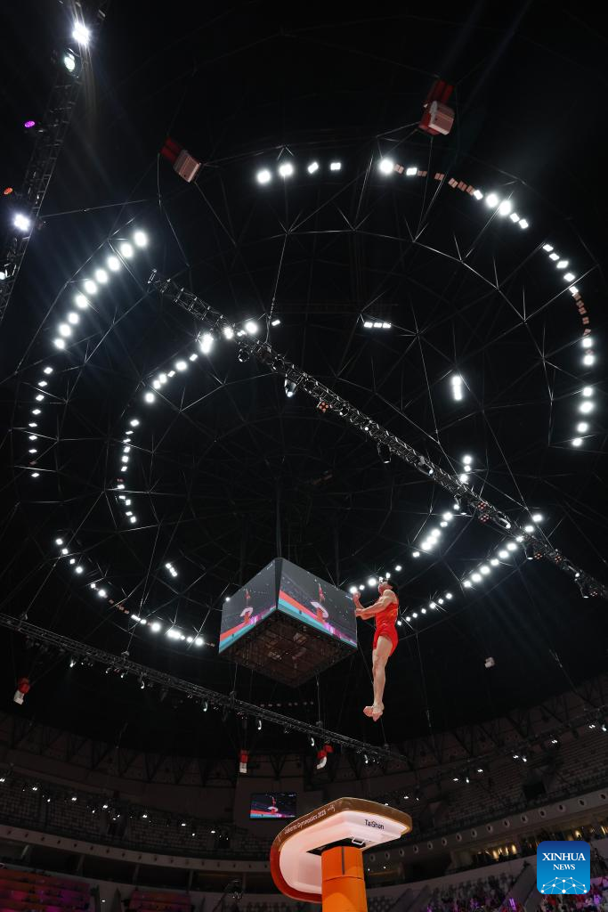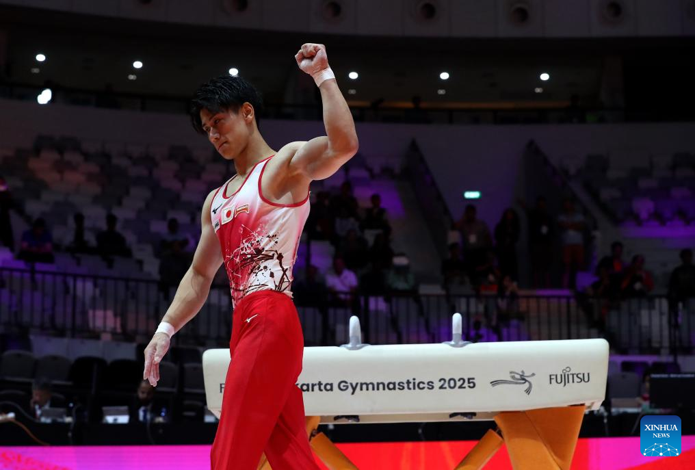 Hashimoto Daiki of Japan competes during the Pommel Horse of Men's All-Round Final at the 53rd FIG Artistic Gymnastics World Championships in Jakarta, Indonesia, on Oct. 22, 2025. (Xinhua/Cen Yunpeng)
