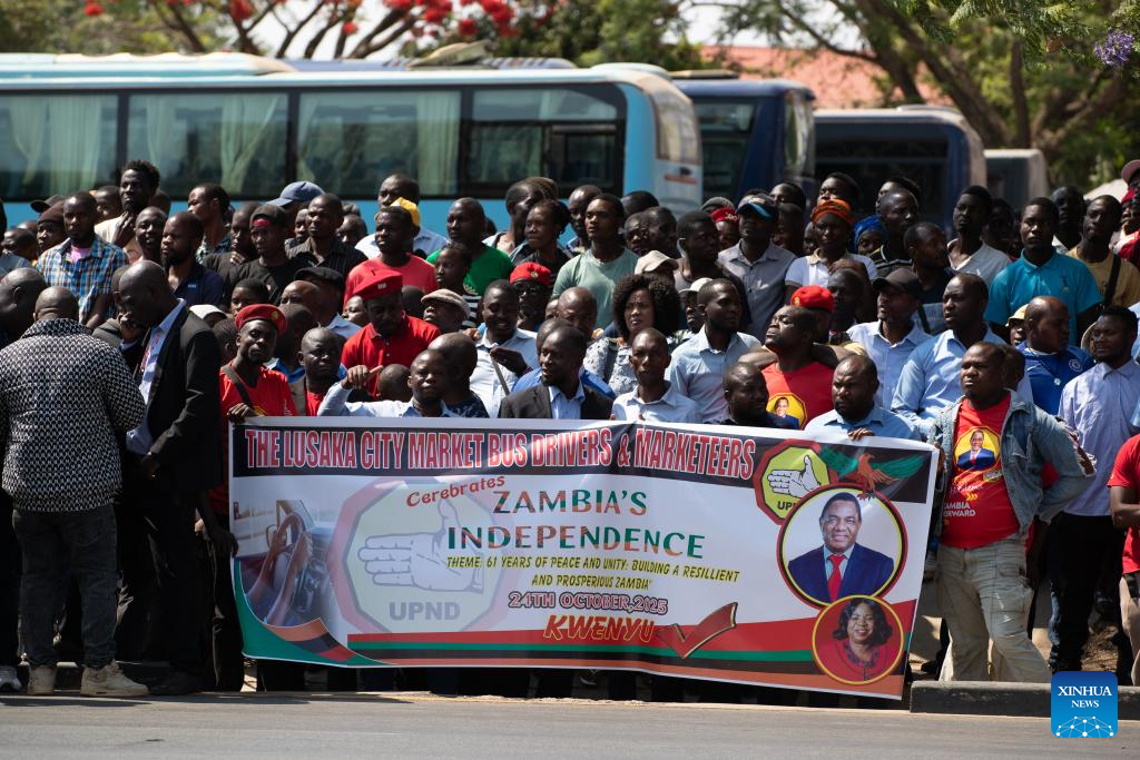 People take part in Zambia's 61st Independence Day commemoration in Lusaka, Zambia on Oct. 24, 2025. (Xinhua/Peng Lijun)