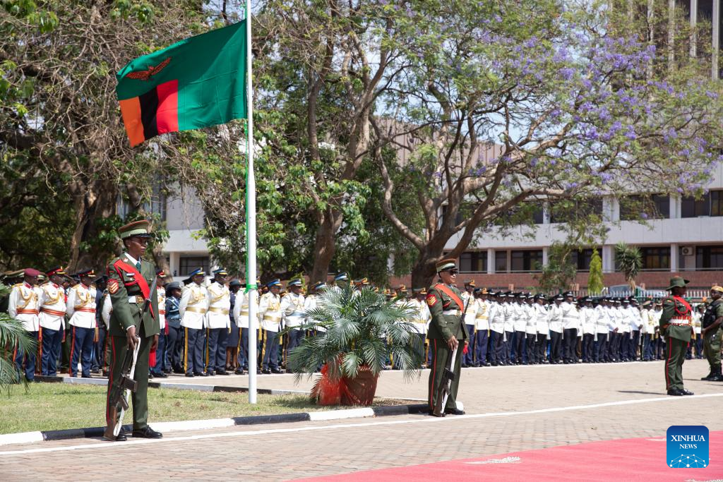 Honor guards take part in Zambia's 61st Independence Day commemoration in Lusaka, Zambia on Oct. 24, 2025. (Xinhua/Peng Lijun)