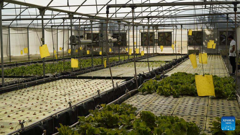 This photo taken on Oct. 23, 2025 shows a hydroponics farm in Tripoli, Libya. To alleviate water and arable land shortages, some agricultural technicians in Tripoli have been using hydroponics to cultivate vegetables. (Photo by Hazem Turkia/Xinhua)