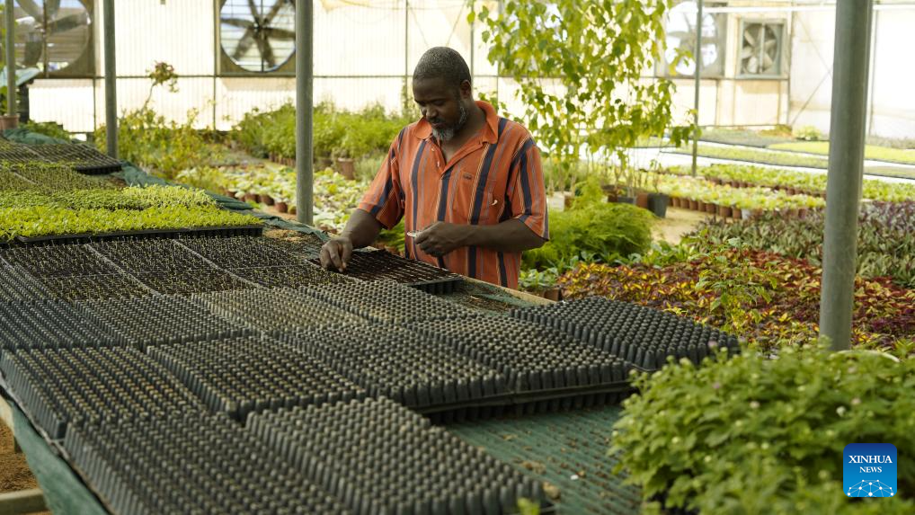 A worker plants vegetables at a hydroponics farm in Tripoli, Libya, Oct. 23, 2025. To alleviate water and arable land shortages, some agricultural technicians in Tripoli have been using hydroponics to cultivate vegetables. (Photo by Hazem Turkia/Xinhua)