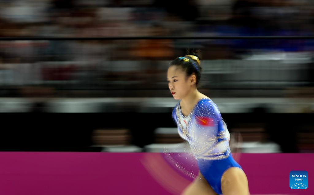 Zhang Qingying of China competes during the Floor Exercise of the Women's All-Round Final at the 53rd FIG Artistic Gymnastics World Championships in Jakarta, Indonesia, on Oct. 23, 2025. (Xinhua/Bai Xuefei)