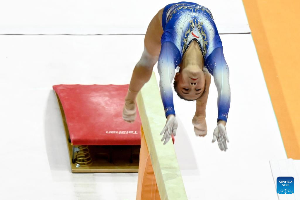 Zhang Qingying of China competes during the Balance Beam of the Women's All-Round Final at the 53rd FIG Artistic Gymnastics World Championships in Jakarta, Indonesia, on Oct. 23, 2025. (Xinhua/Agung Kuncahya B.)