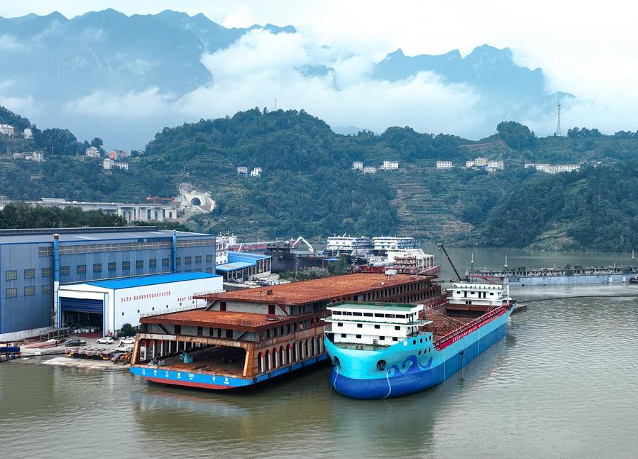 Workers are seen at the construction site of the all-electric bulk carrier Gezhouba in Yichang, central China's Hubei Province, Oct. 19, 2025. (Photo by Zheng Jiayu/Xinhua)This drone photo taken on Oct. 23, 2025 shows the all-electric bulk carrier Gezhouba in Yichang, central China's Hubei Province. (Xinhua/Xiao Yijiu)This drone photo taken on Oct. 23, 2025 shows the all-electric bulk carrier Gezhouba in Yichang, central China's Hubei Province. (Xinhua/Xiao Yijiu)This aerial photo taken on Oct. 20, 2025 shows batteries for the all-electric bulk carrier Gezhouba are hoisted at the dock in Yichang, central China's Hubei Province, Oct. 23, 2025. (Photo by Zheng Jiayu/Xinhua)This drone photo taken on Oct. 23, 2025 shows the all-electric bulk carrier Gezhouba in Yichang, central China's Hubei Province. (Xinhua/Xiao Yijiu)■