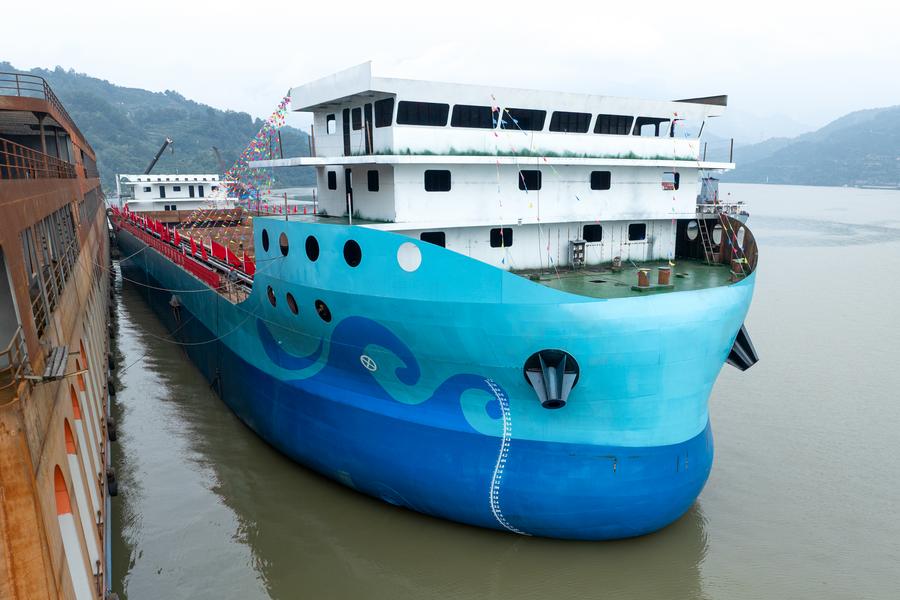YICHANG, Oct. 24 (Xinhua) -- China's biggest all-electric bulk carrier, named Gezhouba, was launched on Thursday in Yichang, central China's Hubei Province, marking a major milestone in the country's green and intelligent shipping industry.
