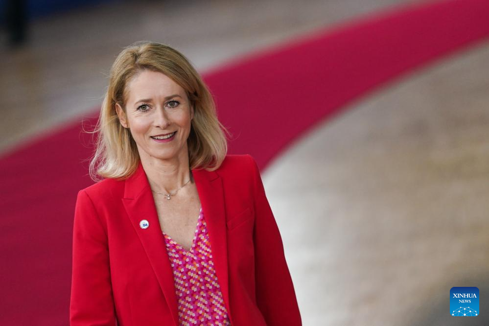 European Union (EU) foreign policy chief Kaja Kallas attends a European Council summit in Brussels, Belgium, Oct. 23, 2025. EU leaders failed on Thursday to agree on a plan to use frozen Russian assets to finance new loans for Ukraine, after divisions resurfaced at a European Council summit. (Xinhua/Peng Ziyang)