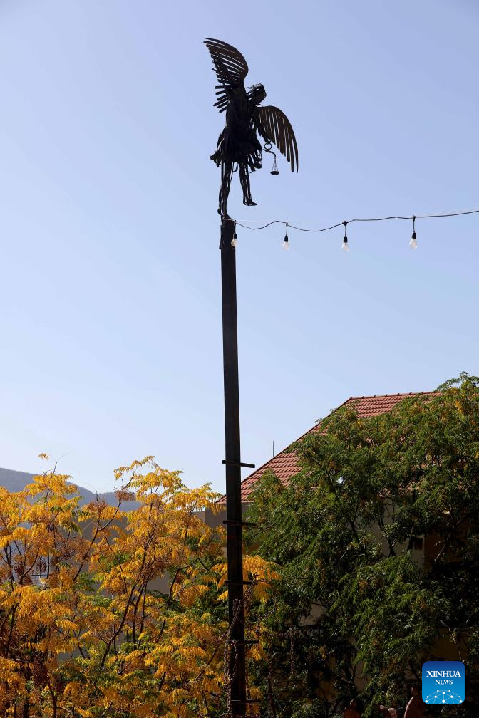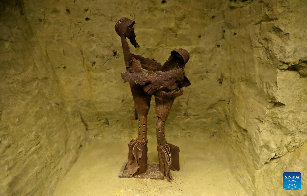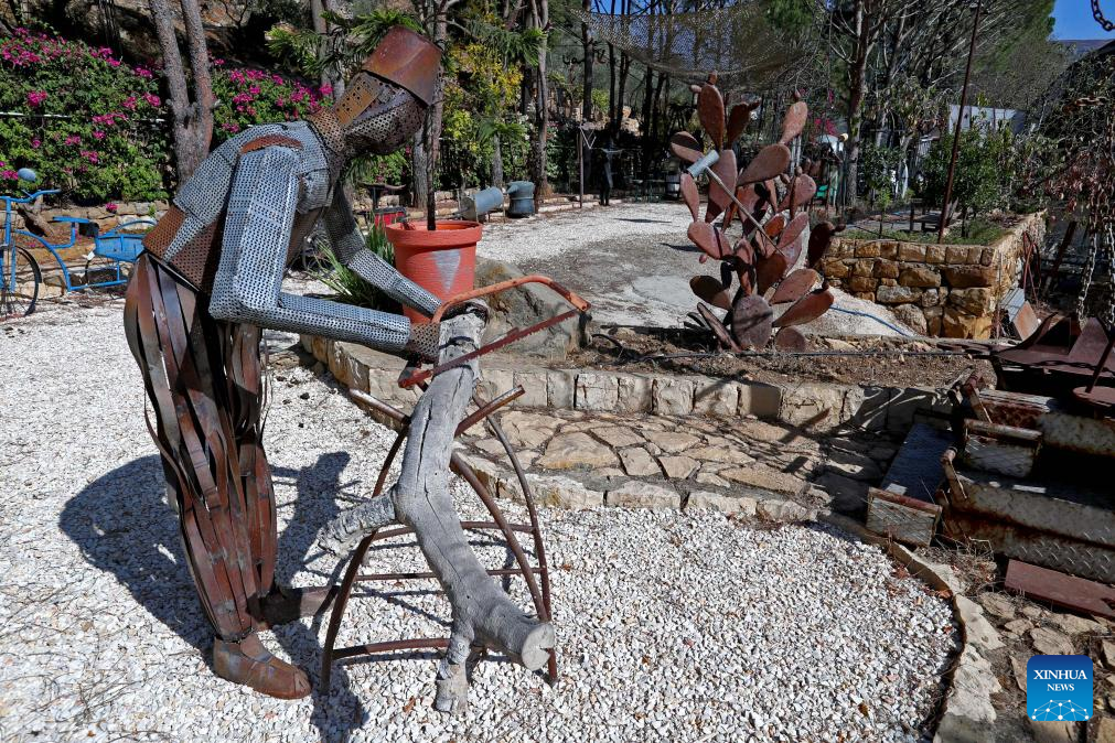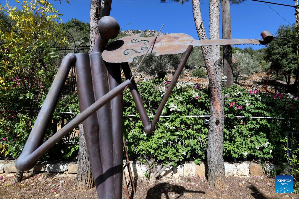 An artwork made from the remains of bullets and shells by Lebanese artist Charles Nassar is displayed at the Shazaya Museum in Remhala, Lebanon, on Oct. 23, 2025. (Photo by Bilal Jawich/Xinhua)