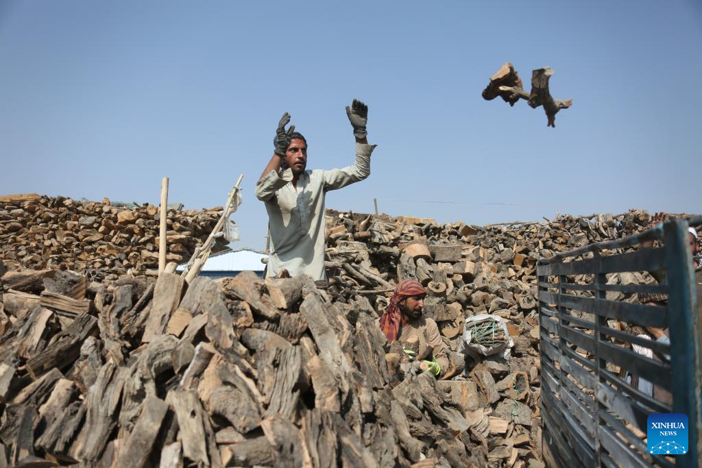 An Afghan worker loads wood at a firewood shop in Kabul, Afghanistan, Oct. 21, 2025. (Photo by Saifurahman Safi/Xinhua)