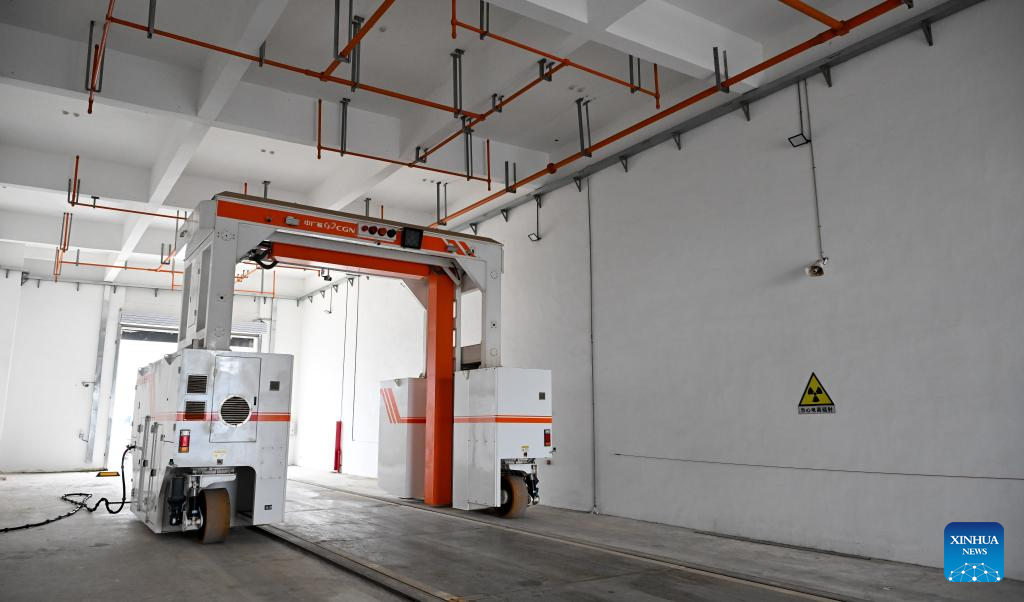 This photo taken on Oct. 23, 2025 shows equipment inside the centralized inspection yard of a freight port in Haikou, south China's Hainan Province.