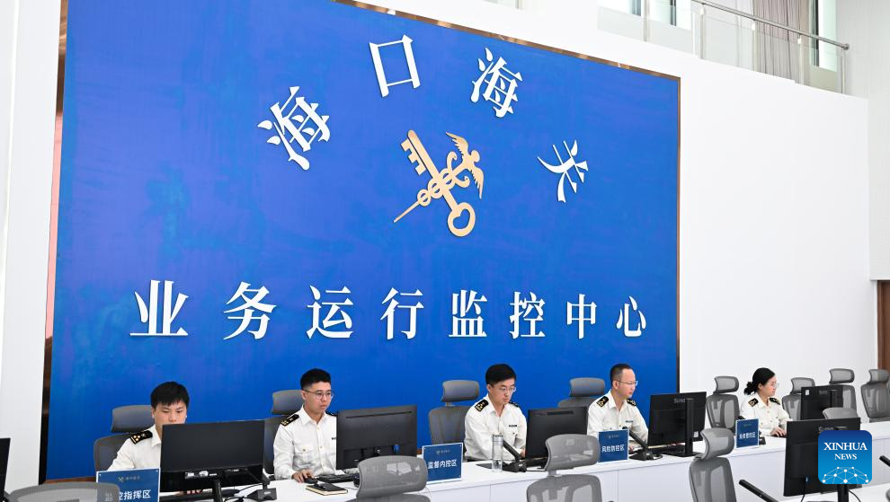 This photo taken on Oct. 22, 2025 shows an interior view of the business operation monitoring center of the Haikou Customs in Haikou, south China's Hainan Province.