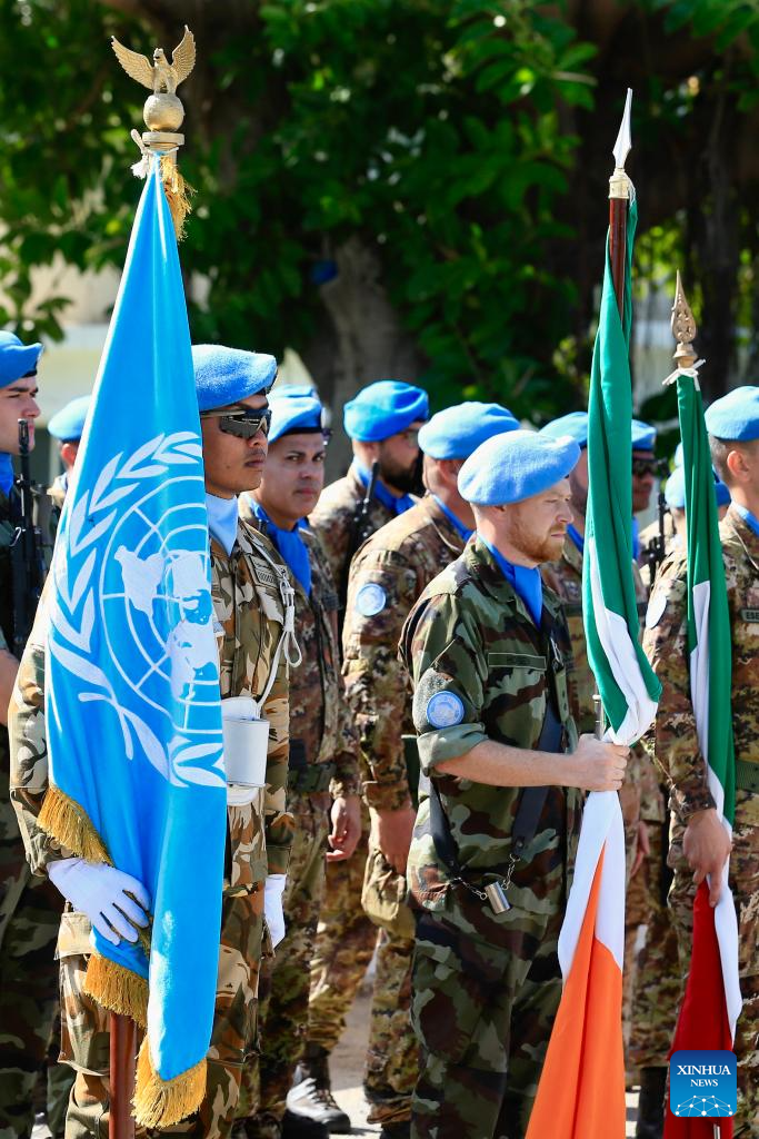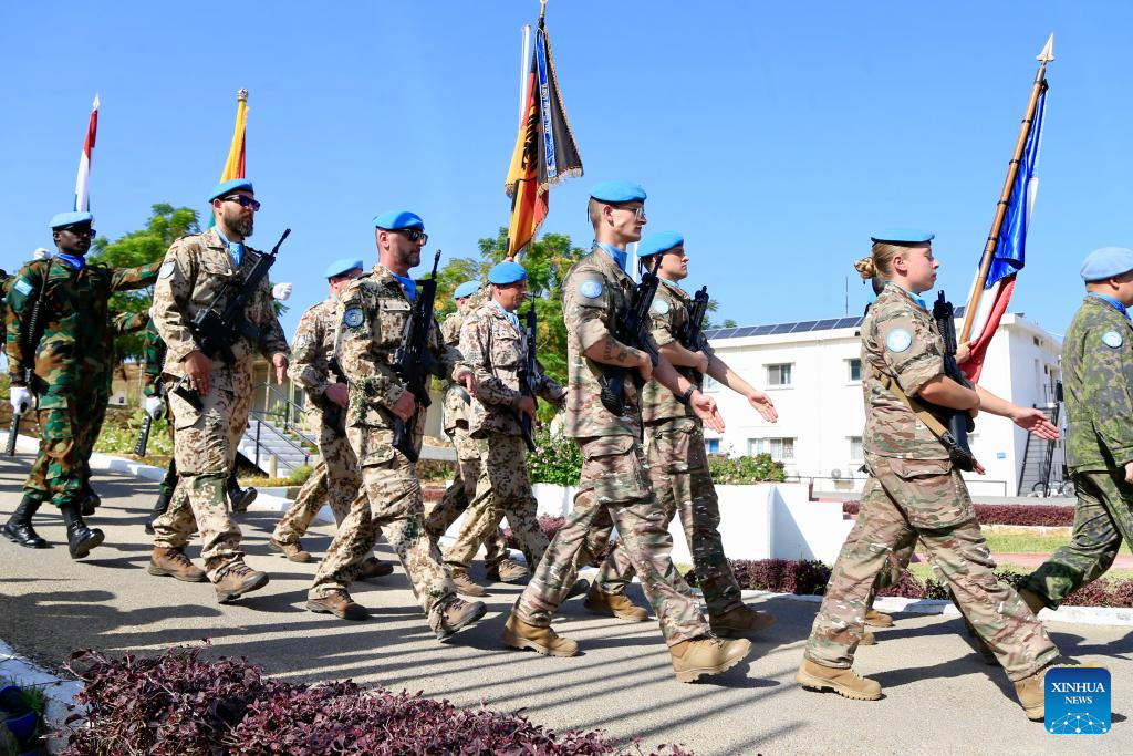 The United Nations Interim Force in Lebanon (UNIFIL) holds a military parade at its headquarters in Naqoura, southern Lebanon, Oct. 24, 2025, marking the 80th anniversary of the founding of the United Nations. (Photo by Ali Hashisho/Xinhua)