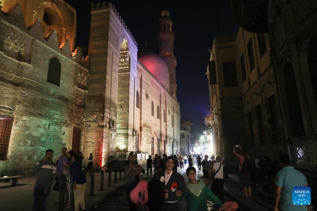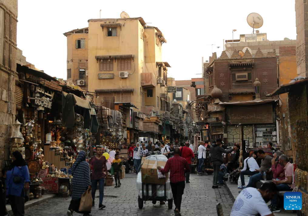 People visit an old street near the Khan el-Khalili old market in Cairo, Egypt, on Oct. 22, 2025. Located in the heart of Cairo's old Islamic district, the centuries-old marketplace of Khan el-Khalili is considered one of the most popular tourist attractions in Egypt. (Xinhua/Sui Xiankai)