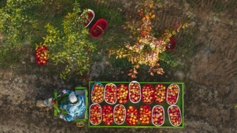 Staff members harvest apples in Alaer City, China's Xinjiang
