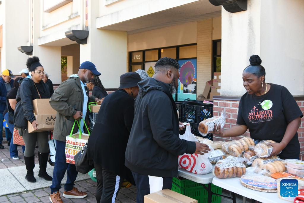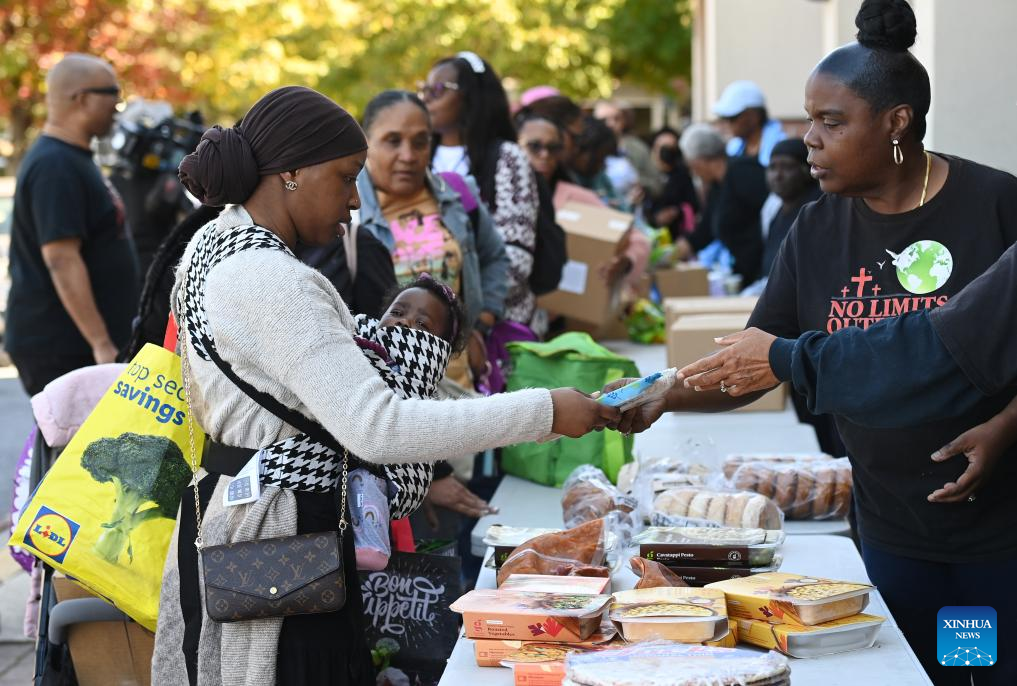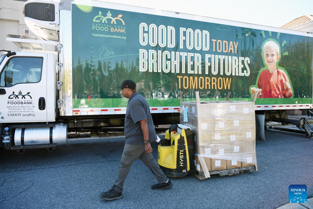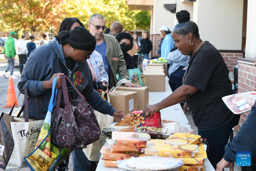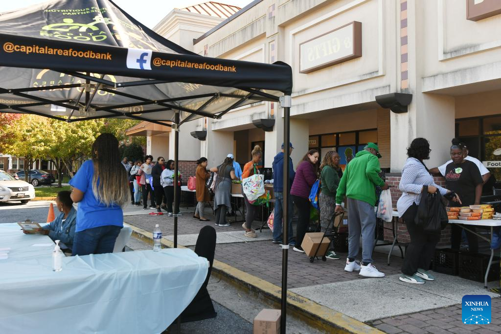 Federal employees and contractors receive food items during a free food distribution in Hyattsville, Maryland, the United States, on Oct. 21, 2025. Starting this week, the nonprofit Capital Area Food Bank started to provide special free food distributions to U.S. federal employees and contractors.